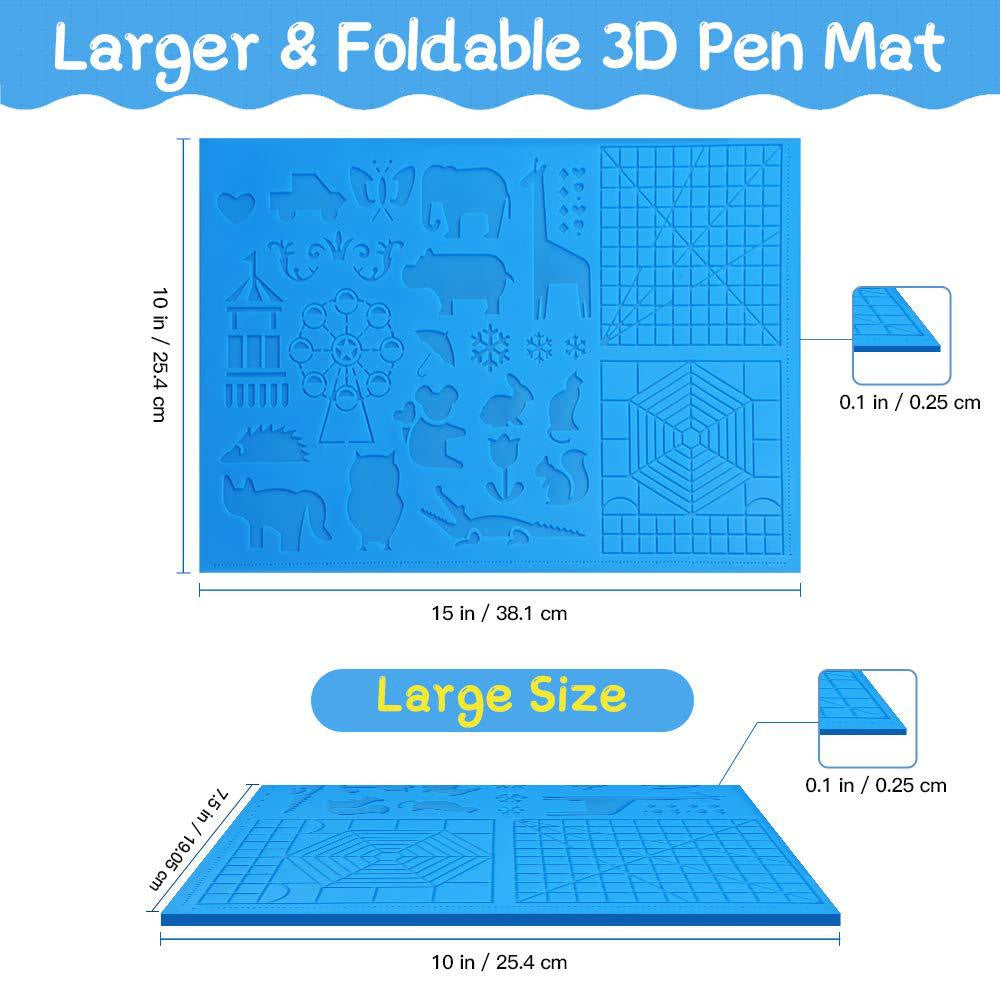Meltreal 3D Printing Pen Silicone Design Mat – DIY Creative Drawing Template Pad with Anti-Heat Finger Protectors | Larger & Foldable, Double-Sided (Patterns + Animal Shapes)